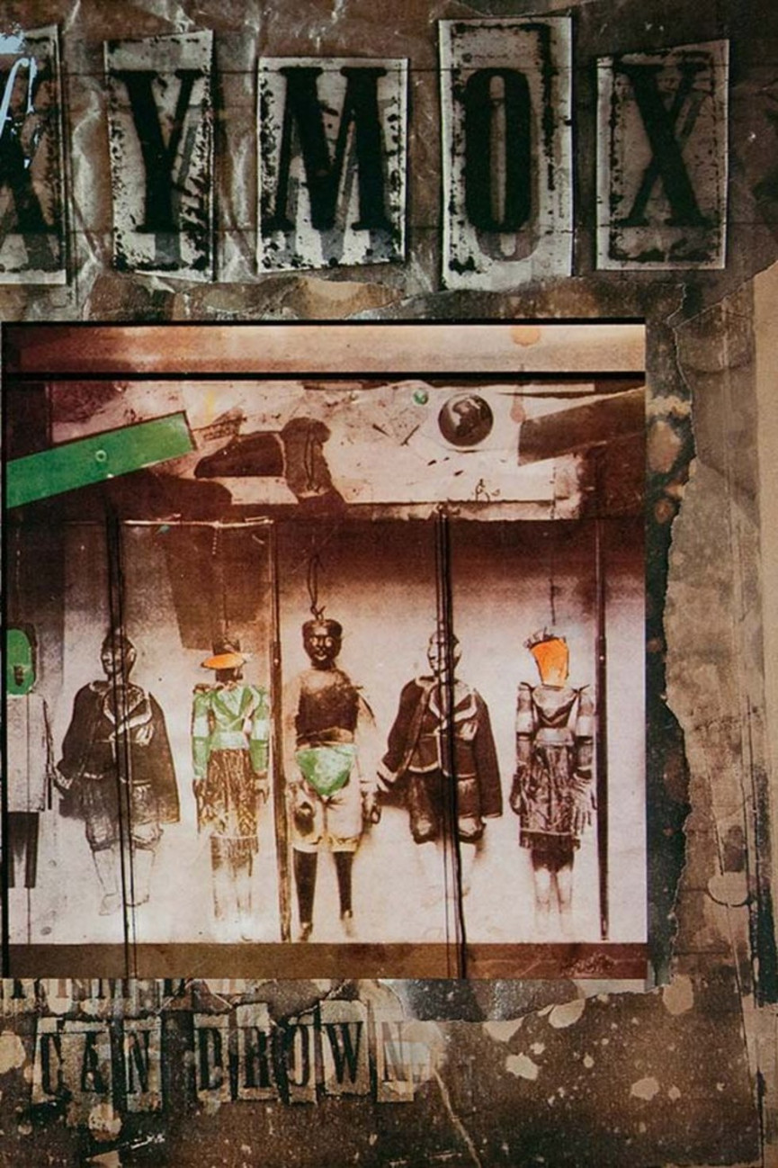 I was excited by the idea of taking the track listing and working it as an image. Information as illustration. I hadn't seen this idea realised in this way previously. Our aim was always to try and break new graphic ground. To experiment and pervert convention. Terry Dowling, my old tutor at Newcastle, provided the puppet print representing the band members. Terry remains one of my biggest influences. He opened my mind to new ways of thinking.